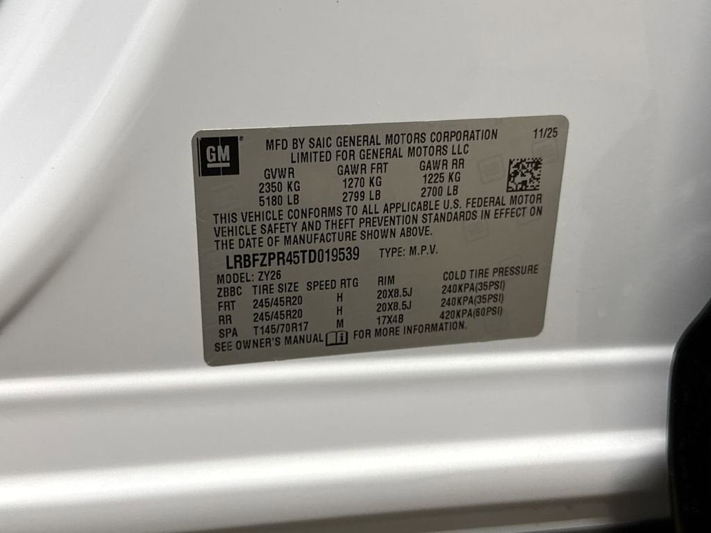 - Tires, P245/45R20 all-season