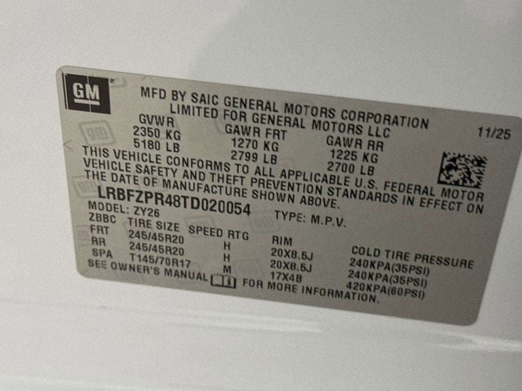 - Tires, P245/45R20 all-season