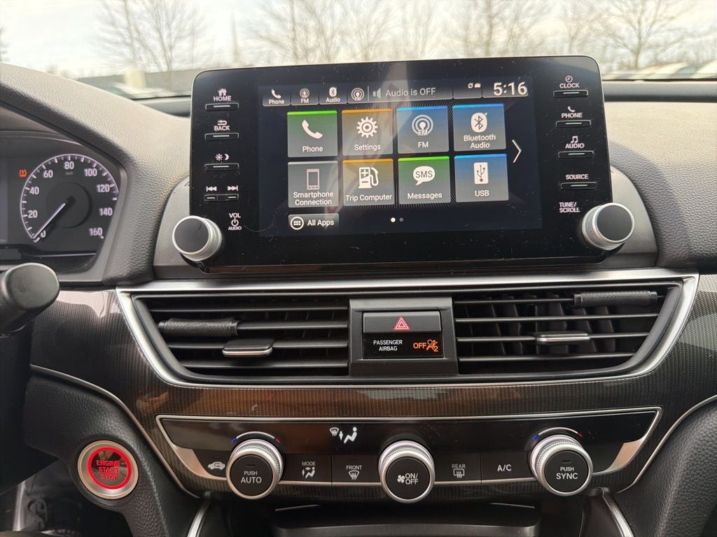- Radio: 180-Watt AM/FM Audio System -inc: 8 speakers, 8" Display Audio w/high-resolution (720P) electrostatic touch-screen, knobs and hard keys for primary controls and customizable feature settings, Bluetooth® HandsFreeLink, Bluetooth® streaming audio, Pandora compatibility, SMS text message function, radio data system (RDS), speed-sensitive volume compensation (SVC), USB smartphone/audio interface w/2.5-amp port in front, HondaLink, Apple CarPlay integration, Android Auto integration, illuminated steering wheel-mounted audio controls and fin-type roof-mounted antenna