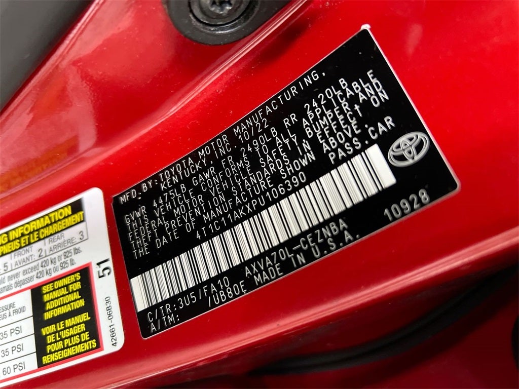 Discover the perfect blend of performance and economy with the 2023 Toyota Camry LE. At its heart lies a robust 2.5L I4 DOHC 16V engine, delivering a smooth and responsive drive. Paired with an 8-speed automatic transmission, this sedan offers seamless gear transitions and optimal fuel efficiency. The Camry's advanced engineering ensures a reliable and enjoyable driving experience, ideal for both city commutes and highway journeys. Embrace the confidence of driving a vehicle designed for today's discerning driver, all wrapped in a striking Supersonic Red exterior.