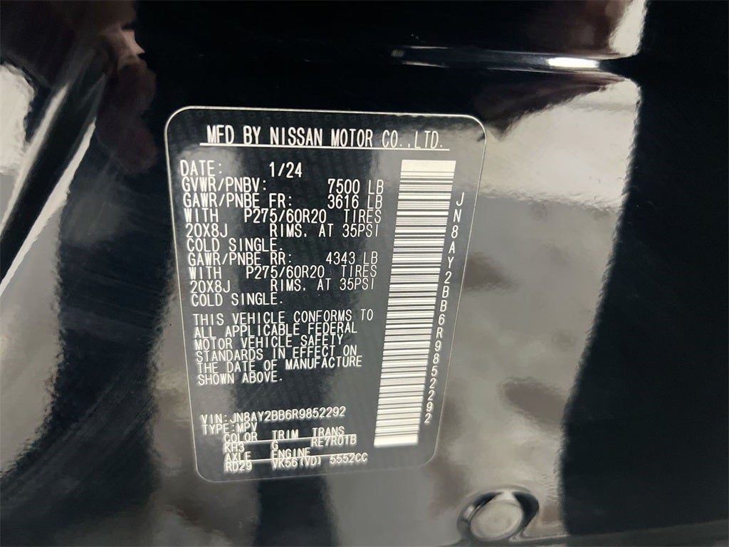 Discover the 2024 Nissan Armada SL, where robust performance meets refined engineering. At its heart, a formidable 5.6L V8 DOHC 32V engine delivers 400 horsepower, ensuring a commanding drive every time. The 7-speed automatic transmission offers seamless gear shifts, enhancing both power and efficiency. Designed for those who demand more, the Armada SL's Super Black exterior exudes a timeless elegance, while its 4D Sport Utility body style ensures ample space and comfort. Whether navigating city streets or open highways, this SUV promises a driving experience that's both dynamic and dependable.